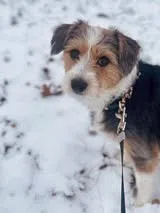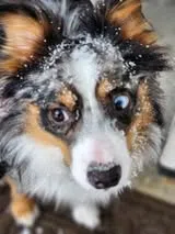 - Bo’s 1st snow. He leaps and bites mouthfuls of it.