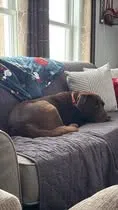 - Hank, chocolate lab. Loves playing outside in the cold and snow. Ripped his dew claw and is recouping inside!